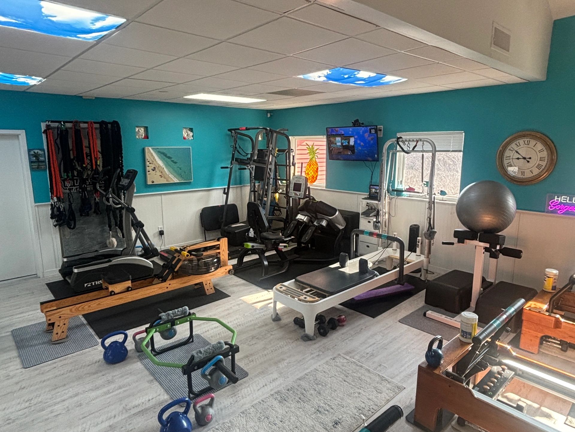 This is NOT TRADITIONAL PILATES! The classes are made up of Pilates-based exercises performed on professional reformer machines with towers, kettle bells, mini trampolines, TRX suspension systems, jump boards, resistance cords, weighted hula hoops, medicine balls, and other fitness tools to add variety and challenge.